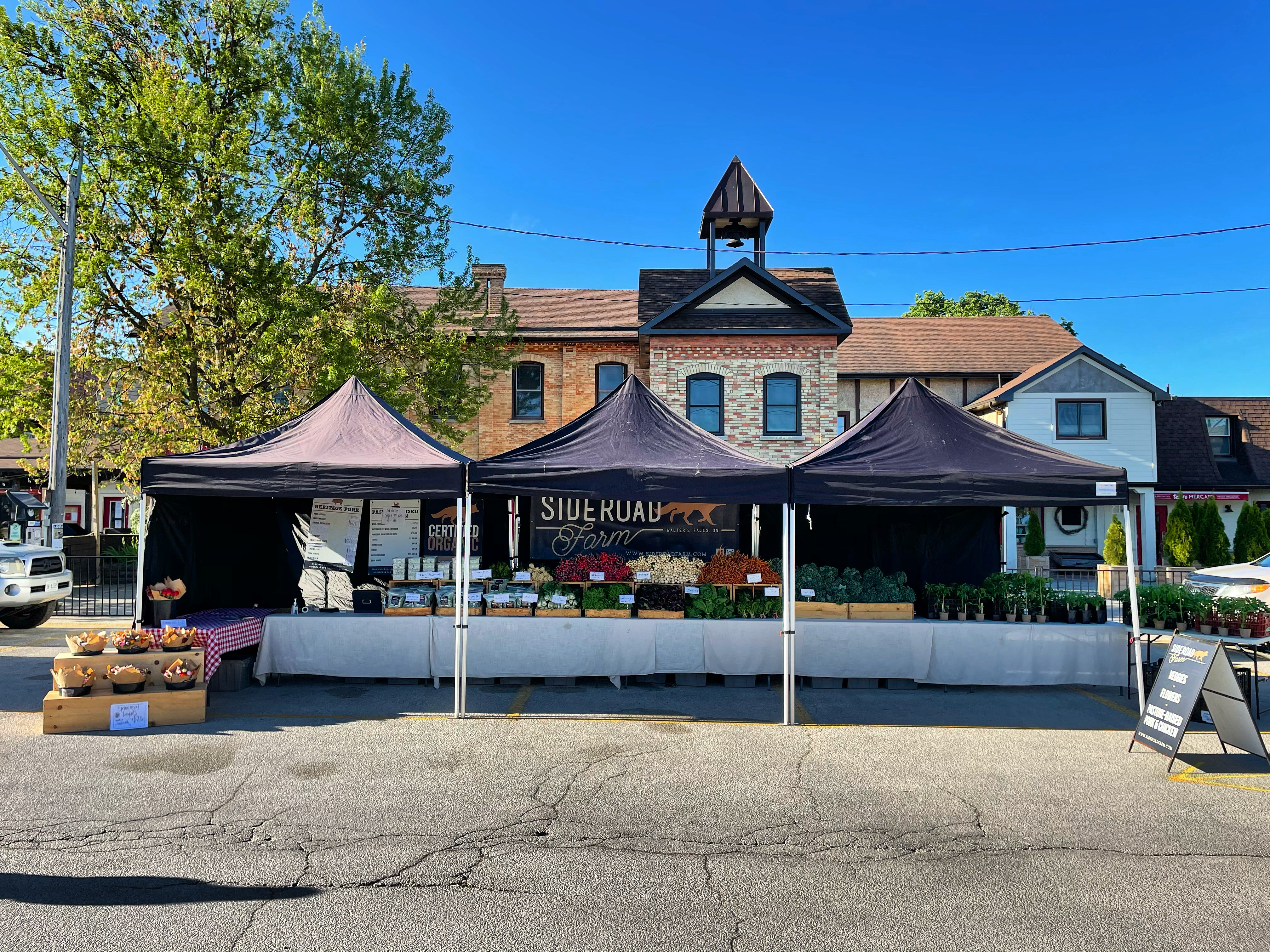 Find Sideroad Farm at the Collingwood Farmers’ Market each Saturday from Victoria Day long weekend in May to Thanksgiving long weekend in October. You can purchase our certified organic vegetables, cut flowers, chicken and pork at the market each week. You can also order from the Sideroad Farm Store for pick up at the Collingwood Farmers’ Market.