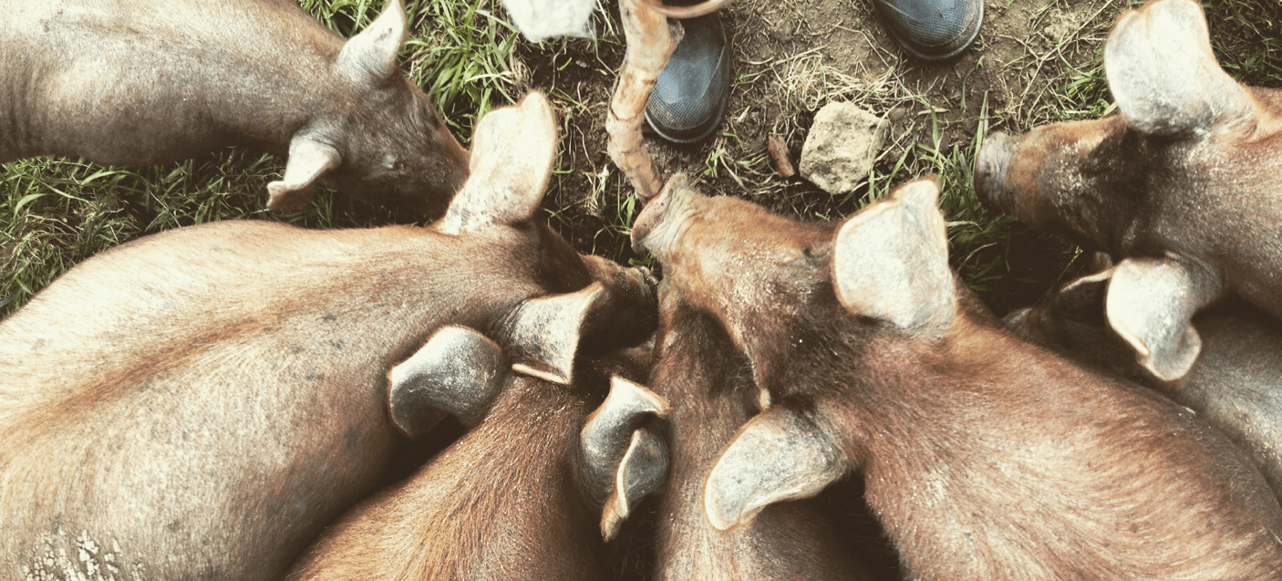 We grow heritage pork, chicken, eggs and turkeys outside on pasture. All of our livestock are fed non-GMO feed and do not receive prophylactic antibiotics.